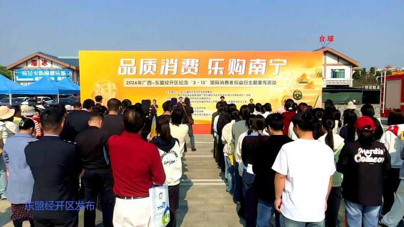 3月13日,广西-东盟经开区在小帽山美食广场举行2026年纪念“3·15”国际消费者权益日主题宣传活动。本次活动以“品质消费 乐购南宁”为主题,通过政校企三方联动,吸引了开发区机关各部门、近30家诚信企业代表、高校志愿者及百余名消费者共同参与,营造了浓厚的消费维权氛围。