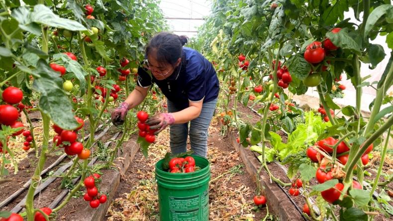眼下,正值早春时节,在位于广西-东盟经开区宁武农场外张队的甜瓜大棚里红彤彤的西红柿宛如一个个红灯笼,挂满藤蔓,不仅扮靓了田间地头,更映红了种植户的致富路。