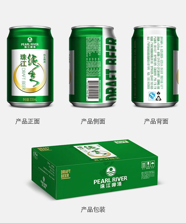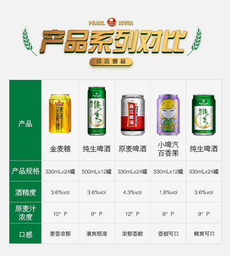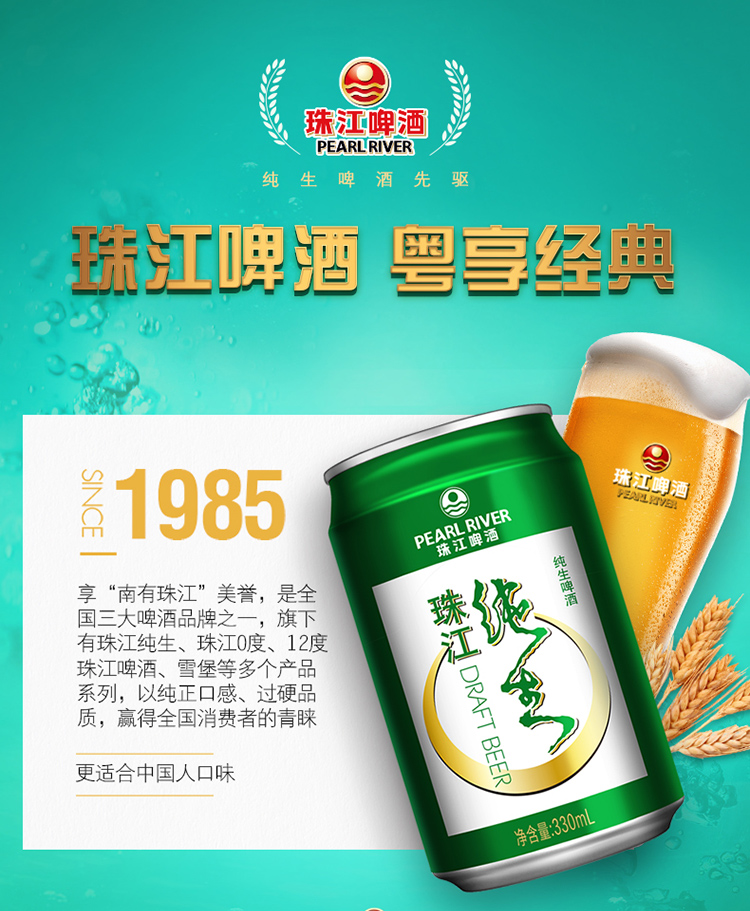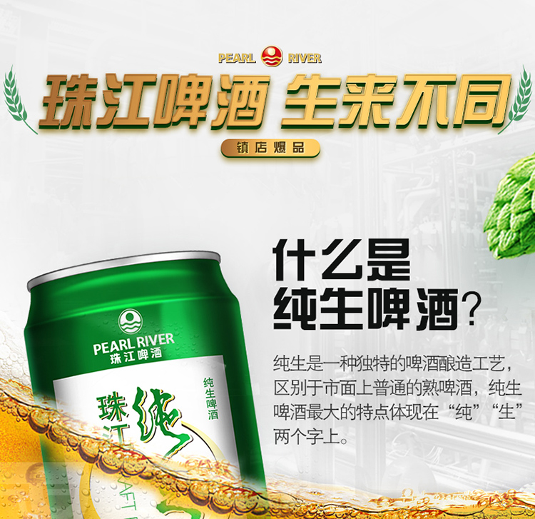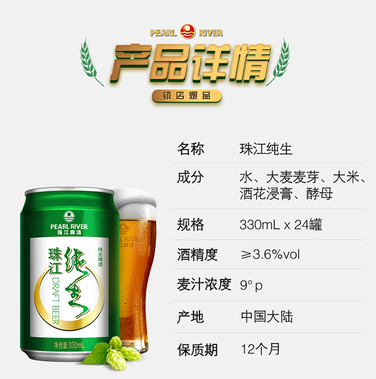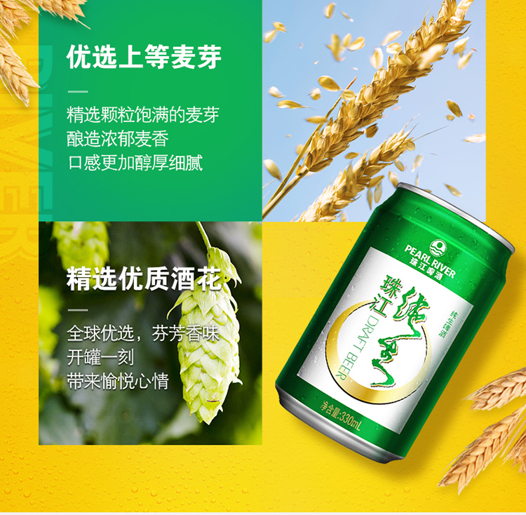 珠江啤酒9度纯生330ml*24罐装酒水整箱易拉罐匠心营造小麦啤酒爽单价:75.90/件