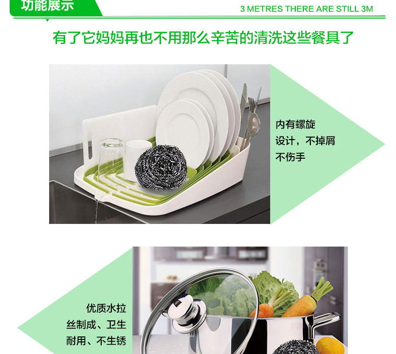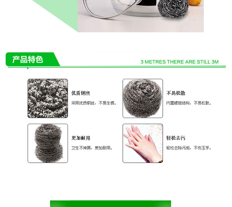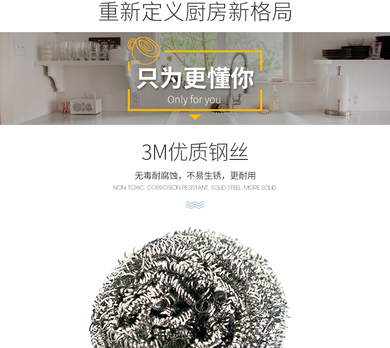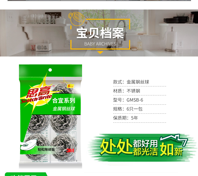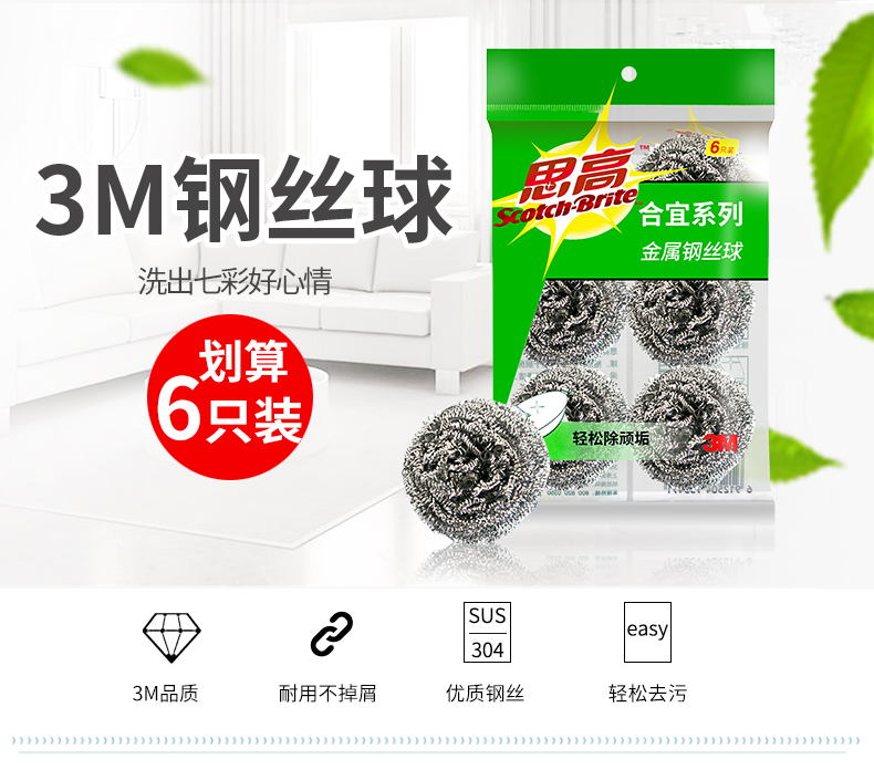 3M思高金属钢丝球厨房不锈钢清洁球家用男女洗碗钢丝球刷锅6只装单价:7.80/包
