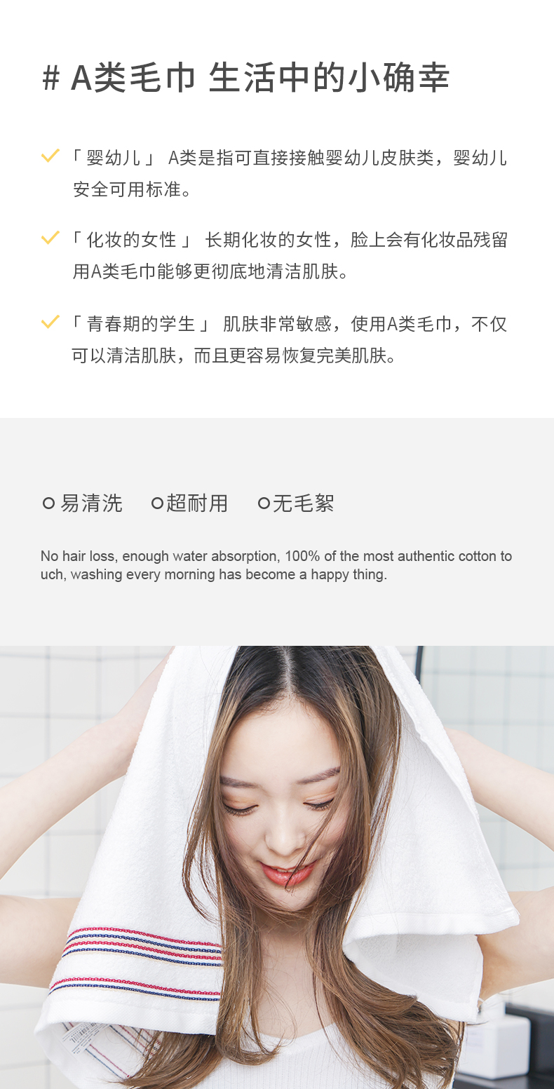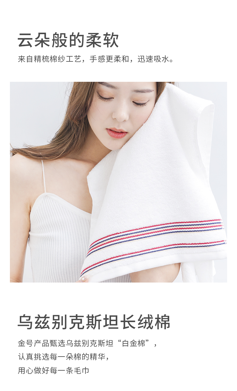 金号A类毛巾纯棉面巾1条装全棉洗脸家用情侣加厚柔软吸水不掉毛单价:9.90/件